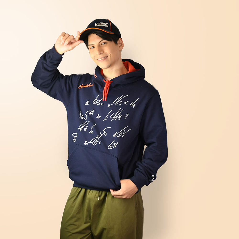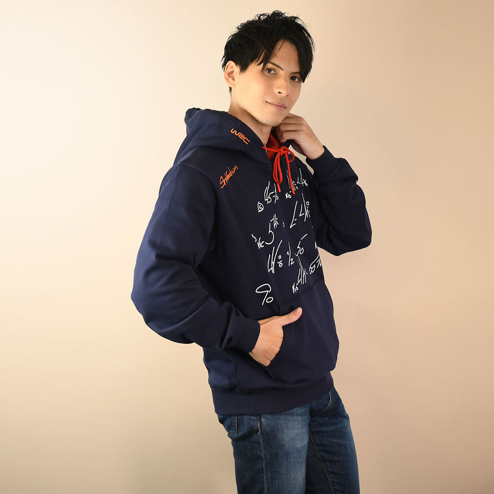 世界最高峰のラリー選手権を戦う選手が実際に使用した、詳細な指示や距離、計算され尽くしたノートをモチーフにデザインしたプルオーバーパーカーです。