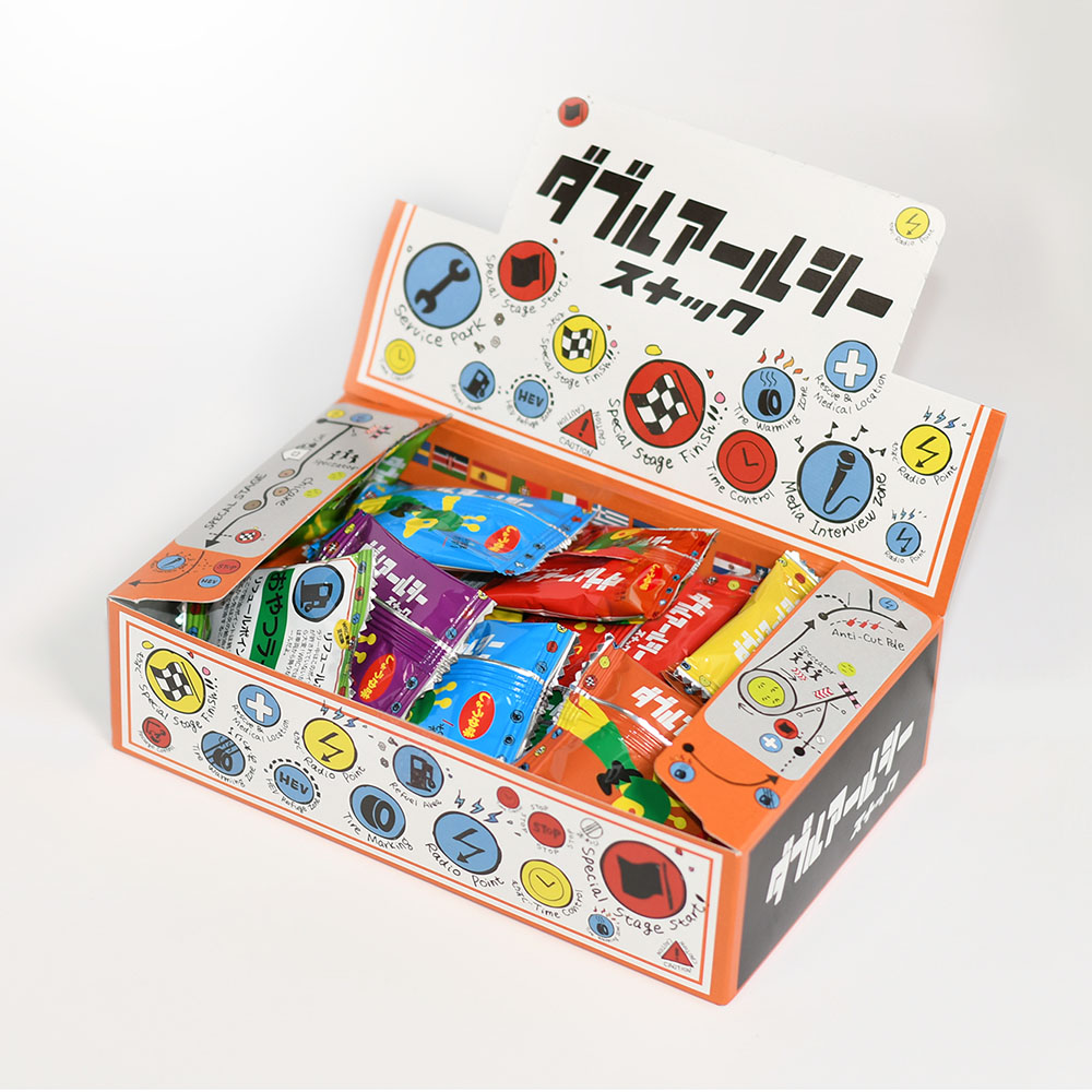 ラリー観戦の合間や、ドライブのお供、小腹が空いた時にもぴったりな、手軽で美味しいスナックがたっぷり30袋入った大容量BOXです。